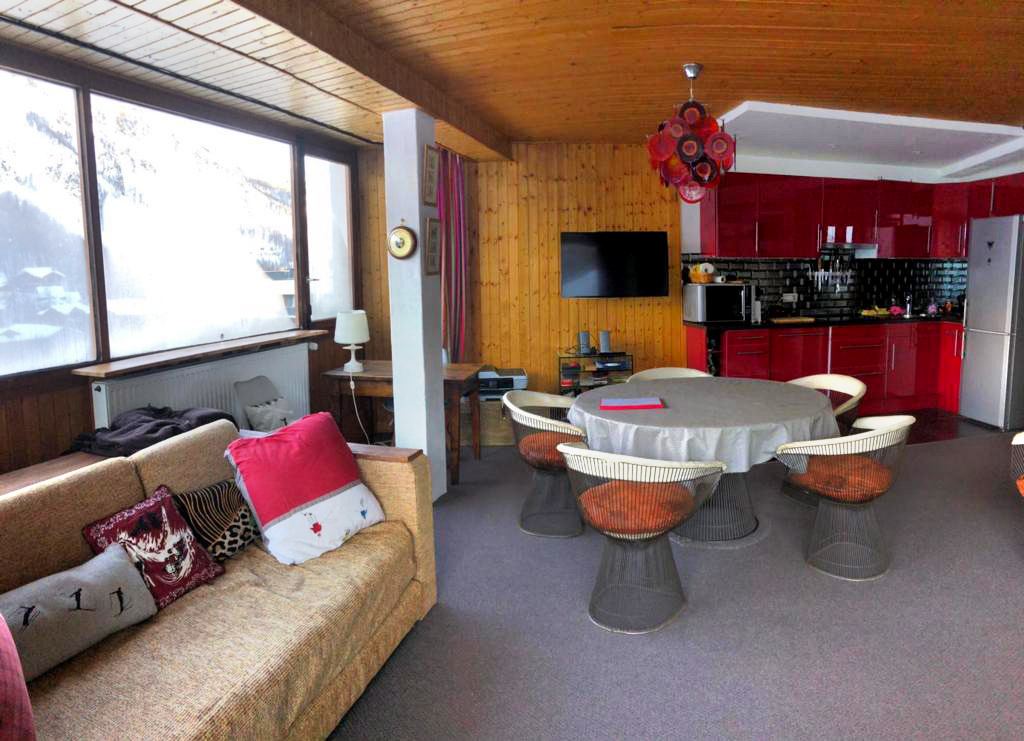 L’appartement se situe au 7ème étage, récemment rénové, particulièrement lumineux et chaleureux. Avec balcon exposé sud et vue exceptionnelle sur les montagnes et le village. Surface 45m². Avec une chambre séparée, lit double et lits superposé simple, placard. Lits rabattables à l’entrée. Salle de bains avec baignoire et toilettes séparés. Cuisine ouverte sur le salon entièrement équipée, four, four micro-ondes, plaques vitrocéramique, lave-vaisselle, frigidaire. Salon-salle à manger, canapé convertible en lit double, fauteuils et table ronde, TV écran plat, accès WiFi. La copropriété ne permet pas de faire des feux de cheminée.